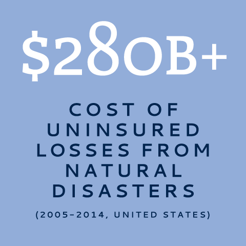 $280B+ Cost of uninsured losses from natural disasters (2008-2014 in the United States)